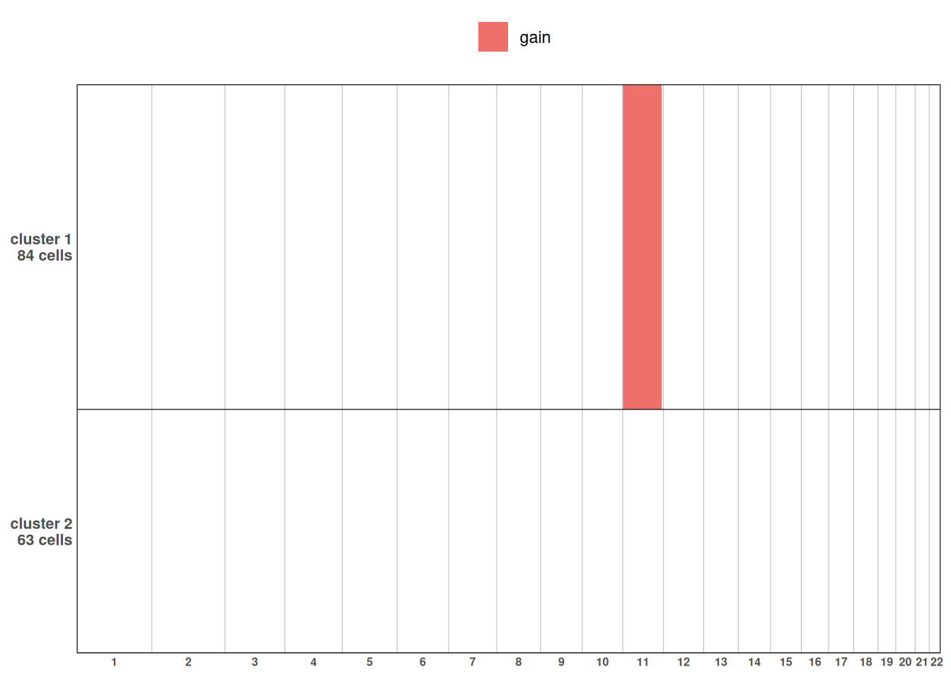 The complete CNA profile of the sample across clusters is visualized using plotCNA()